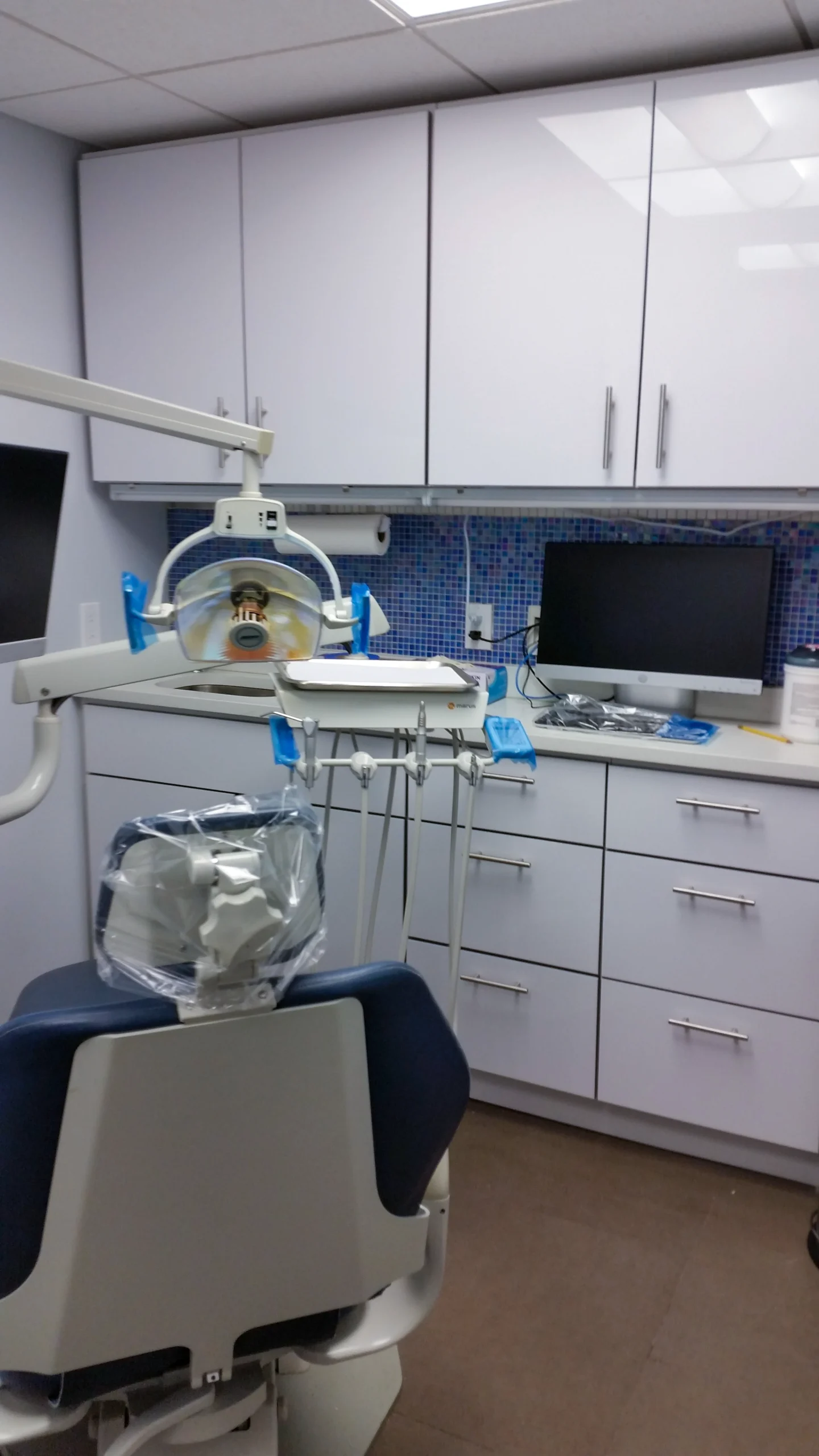 The office underwent a three-phase renovation, including cabinet replacement, new flooring, and the addition of operatories, a private office, and a kitchen. The front reception and waiting areas were restyled with decorative elements, creating a cohesive and visually appealing space